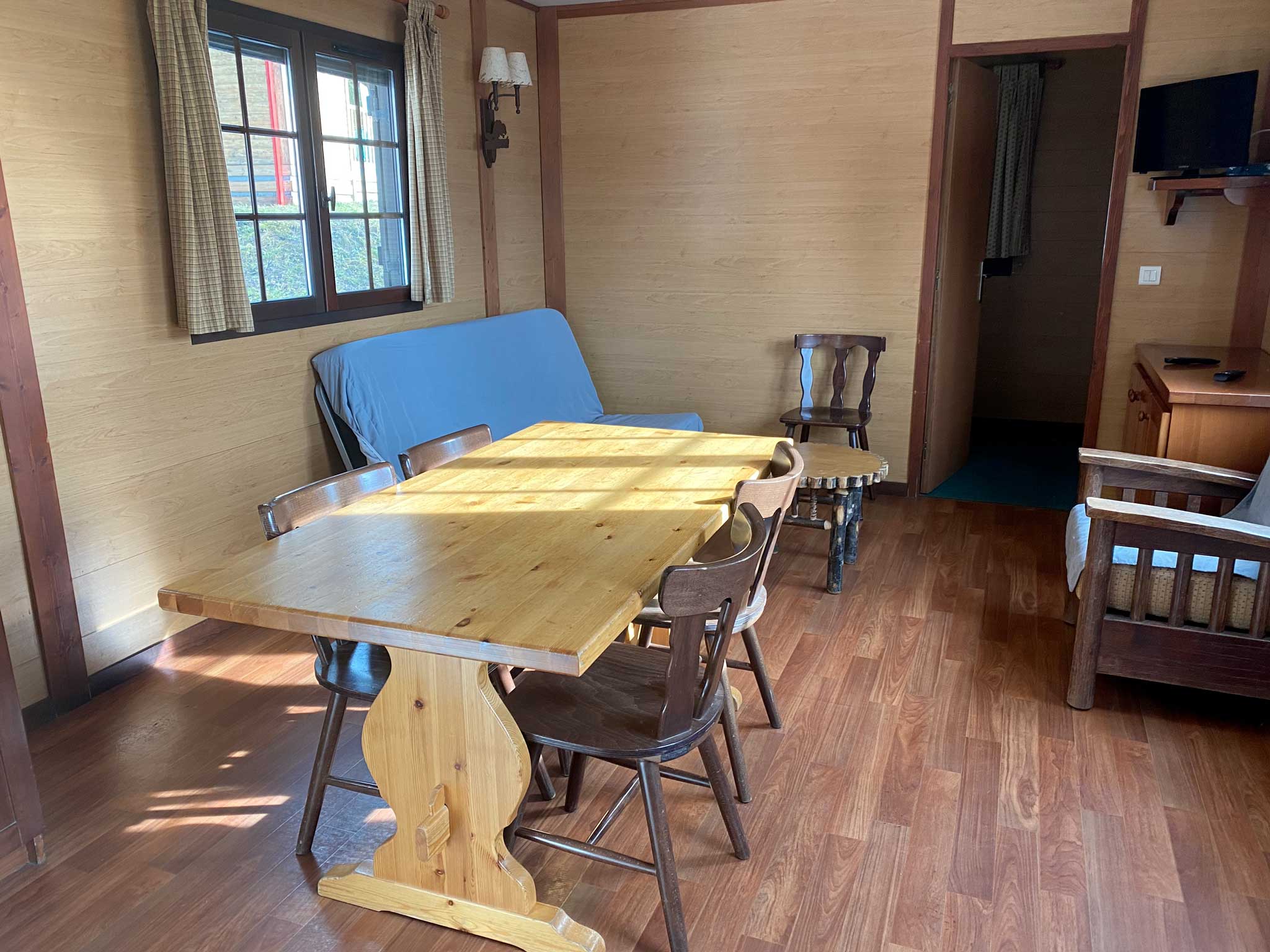 Vous profiterez d’une terrasse privative équipée d’un salon de jardin et de tout le confort qu’offre nos mobil-home.
